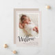 Este anúncio de nascimento minimalista apresenta uma grande fotografia e uma bonito caligrafia. O nome do seu novo bebê está escrito em carvões, em cartazes de cinza e sobrepõe sua foto favorita. Abaixo da caligrafia, adicione o nome do seu cheio, estatísticas de natalidade e seus nomes. O fundo castanho claro na frente e o fundo mais escuro do que o fundo na parte de trás do cartão podem ser alterados se você quiser. Você também pode adicionar fotos adicionais e uma mensagem personalizada no verso.