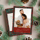 Cartão de Natal de casal tradicional e novo, elegante, com padrão botânico vermelho e verde de inverno.