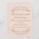 As espirais decorativas e o florescimento enquadram esta elegante vintage inspirou o sinal de casamento / carta. Esquema de cor rosa e ouro antigo.
