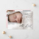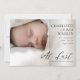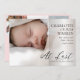 Um painel direito semiopaco cobre parte da sua foto e serve como pano de fundo para os detalhes do anúncio de nascimento. A legenda ineditável "Por Fim" fica na parte inferior direita com as palavras "Nossa Menina Chegou!" (Editável). Basta adicionar o nome do seu bebê, a data de nascimento e as estatísticas de natalidade na frente e a sua mensagem única no verso. Possui uma foto grande na frente e três fotos pequenas na parte de trás, em uma paisagem horizontal, com dois lados, simplesmente subestimada. Design composto por Designs Holiday Hearts com fotos marcadoras fornecidas via Unsplash.