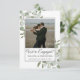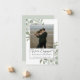 Este belo cartão é uma maneira maravilhosa de anunciar a grande notícia aos seus amigos e familiares. Concebido como um precursor de um cartão de "salve a data", a legenda neste cartão simplesmente diz "estamos noivos" com espaço para seus nomes e uma pequena nota. O adorável design apresenta raminhos rústicos pintados à mão com aguarela de eucalipto e folhagens. O verso é de uma cor verde sage pálido com um buquê de folhagens em aguarela atado com um laço de cetim branco.