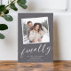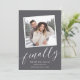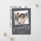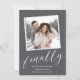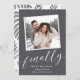 Compartilhe as notícias do seu tão esperado noivado com estes cartões de anúncio chic com uma foto quadrada com uma borda decodificada. "Finalmente" aparece em um roteiro branco de caligrafia, com seu anúncio, nomes e detalhes adicionais abaixo.