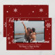 Noivado de Inverno Espanhol Floco de Neve Vermelho Natal Anúncio - Feliz Navidad Nos Comprometimos com uma foto personalizada em um fundo vermelho profundo festivo e flocos de neve invernais brancos.