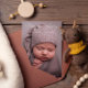 Anúncio de nascimento de foto personalizado com uma grande foto no cobrir e mais três fotos no verso. O nome do seu bebê em um guião de assinatura branca junto com o seu sobrenome no topo, e o estado de nascimento no fundo. Belo novo anúncio de bebê que funciona tanto para meninos quanto para meninas.