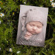 Anúncio de nascimento de foto personalizado com uma grande foto no cobrir e mais três fotos no verso. O nome do seu bebê em uma assinatura branca junto com o sobrenome e as estatísticas de natalidade. Belo novo anúncio de bebê que funciona tanto para meninos quanto para meninas.