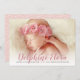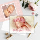 Um cartão de anúncio simples e doce de fotografia para apresentar a sua linda bebê recém-nascida inclui uma fotografia de recém-nascidos 5 x 7" de cheio com uma cobertura de texto de na moda que apresenta o primeiro e o nome do meio do seu bebê em roteiro com todas as importantes estatísticas de nascimento. Um padrão de bolinhas brancas de abstrato, juntamente com uma segunda foto de bônus do bebê, vestem a parte de trás desta design de dois lados. As cores de texto da cinza rosa rosa e carvão + cor de fundo rosa pincelada na parte traseira da placa podem ser modificadas para se coordenar com suas fotos.