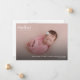 Anúncio de nascimento de fotografias simples, bonito, moderno e com um cheio de foto horizontal sangrando. No verso há outra foto em um quadro com informações adicionais que você pode substituir por sua mensagem personalizada.
