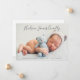 Basta um cartão de anúncio de na moda para apresentar seu lindo bebê recém-nascido apresenta uma foto de recém-nascido de 5 x 7" com o moderno roteiro de caligrafia texto suave de cobertura preta que pode ser personalizado com o nome do bebê e as estatísticas de natalidade. Uma colagem de 4 fotos, junto com os nomes dos membros da família anunciando o bebê, aparece atrás do design do cartão. Nota, a cor do texto de destaque na frente pode ser modificada para contrastar a foto do bebê.