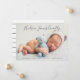 Basta um cartão de anúncio de na moda para apresentar seu lindo bebê recém-nascido apresenta uma foto de recém-nascido de 5 x 7" com o moderno roteiro de caligrafia texto suave de cobertura preta que pode ser personalizado com o nome do bebê e as estatísticas de natalidade. Um padrão de listras horizontais brancas e pretas suaves se encolhe na parte traseira do design da placa mínima.
