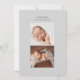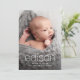 Um anúncio de nascimento de fotos com sangramento de cheio com grande elemento de nome móvel em uma fonte moderna elegante com detalhes de nascimento abaixo. A parte de trás do cartão permite mais 2 fotos de recém-nascidos e mensagens pessoais dos pais ou informações adicionais sobre o nascimento. Todos os elementos desta placa são personalizáveis, de modo que é fácil criar um tipo de design, trocando as fontes e cores do texto e da cor de fundo para atender às suas necessidades específicas. A parte de trás do cartão é um lugar ideal para adicionar fotos de irmãos e incluí-las no anúncio empolgante de seu novo irmão ou irmã. Isso faria uma adorável adoção ou um anúncio de gravidez também.