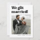 Faça uma declaração com o nosso "Nós Amarrámos o Nó Bold Retro Casamento Anúncio Cartão". Com uma tipografia retrô atraente e espaço para a sua foto de casamento favorita, este design combina charme vintage com charme moderno. Perfeito para casais que amam um visual divertido e elegante, é totalmente personalizável com seus nomes, data de casamento e mensagem pessoal — uma maneira divertida e memorável de compartilhar a sua grande notícia.