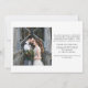 Este simples e elegante cartão de anúncio de fuga para casamento apresenta uma foto pessoal do casamento na frente, com as palavras "nos casamos" em escrita rústica e branca à mão. O verso do cartão tem espaço para outra foto, além de espaço para detalhar os pormenores da fuga ou fornecer detalhes para uma recepção ou celebração após o casamento. Um design elegante que é a maneira perfeita de informar amigos e familiares que você está casado!
