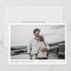 Este modelo de cartão simples e elegante para anúncio de casamento em formato flat com foto apresenta seus nomes e detalhes abaixo da foto. Escolhemos cantos arredondados como a forma padrão, mas também fica ótimo com cantos pontiagudos, então experimente ambos os estilos no modo de edição para ver qual você gosta mais! Escolhemos uma tonalidade de azul média e escura elegante como cor padrão para todo o texto em ambos os lados. Você pode optar por alterar a fonte, pontuação ou cor usada para vários elementos de texto deste design na frente e/ou no verso. Por exemplo, você pode optar por dar uma cor diferente a alguns ou todos os textos, ou alterar 'NÓS NOS CASAMOS!' para 'NÓS FICAMOS NOIVOS!' ou algo mais. Você pode optar por excluir algo ou alterar completamente um campo de texto com uma mensagem diferente. No verso, escolhemos uma cor de fundo chamada Fumaça