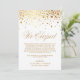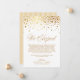 Nós fugimos! Anuncie o seu casamento à família e amigos com esta carta de apresentação do anúncio do elopemento fotográfico. Ele apresenta pontos de confete de folha de ouro falsos, script elegante e padrão de pinstripes. Personalize adicionando nomes, data, local, foto e mensagem. Este roteiro de casamento também é perfeito para qualquer estação. Você pode personalizar ainda mais a parte de trás do convite mudando o padrão das pinstripes para uma foto ou qualquer outra imagem.
