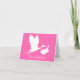 Um cartão do anúncio da gravidez com a silhueta da cegonha do vôo no branco contra um fundo do rosa quente.