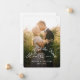 Este elegante cartão de anúncio do elopemento do casamento mostra sua foto e 'Nós amarramos o nó' em um roteiro elegante com sua data, nomes e localização abaixo dela em branco. Você pode excluir o círculo ao redor da sua data se preferir uma aparência mais simples. A forma padrão da placa é uma forma de colchete distinta, mas você pode facilmente alterá-la para cantos mais nítidos ou arredondados, se preferir. No verso escolhemos um fundo transparente, que permite que o papel sirva simplesmente como tom base. Mas você pode escolher uma cor se você tem um aspecto diferente. Escolhemos cinzas escuras como a configuração padrão para o texto no verso. Colocamos algum texto de marcador de posição no verso para que você substitua por sua própria mensagem. Mas, por favor, não se sintam restringidos por isto. Se você preferir excluir nosso texto de marcador de posição e manter a parte de trás totalmente vazio para que você possa escrever uma nota manuscrita em cada cartão, você pode fazer isso. Ou você pode querer substituir nosso texto por sua própria mensagem, mas excluir os nomes de exemplo abaixo disso sem inserir seus próprios nomes, para assinar cada cartão manualmente. Nesse caso, talvez você queira adicionar um fechamento de sua escolha acima de onde assinará. Apenas certifique-se, em qualquer caso, de excluir nosso texto de marcador de posição/exemplo em ambos os lados da placa, incluindo os nomes de exemplo na frente e atrás. Use as ferramentas intuitivas de design, sua foto favorita e sua inspiração para fazer com que esta carta de anúncio de elopemento de casamento, simplesmente elegante, seja sua!