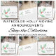 Ele é decorado com azevinho e frutas em tons de vermelho e verde e tipografia cursiva.