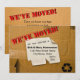 Alegre aviso de caixa de papelão para amigos e familiares informando onde estamos após a mudança......