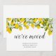Com limões e flores, este cartão de anúncio de mudança de casa moderno e elegante pode ser personalizado com o seu novo endereço e detalhes de contato. Concebido por Thisisnotme©