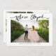 O anúncio do casamento elegante e moderno, carta de dois lados, com um roteiro escrito à mão que diz "Eloped" em cima da sua foto. Este cartão tem 3 fotos no total.