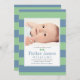 Anuncie a chegada do seu bebê em estilo com cartões clássicos e simples de anúncio de nascimento que apresentam uma foto do seu bebê enquadrada por listras horizontais pré-disquete e um sotaque design de gravata arco. Verde-Casa, azul-ardente, cinzas de carvão e cores brancas.