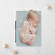 Um cartão modelo de anúncio de nascimento elegante e caprichoso com um roteiro escrito à mão que diz "Nosso Pequeno Milagre" com estrelas à sua volta. Este design de texto sobre uma foto recém-nascida é tão na moda e moderno. Várias imagens estão disponíveis para serem adicionadas à frente e atrás com as estatísticas de natalidade. Trabalha para rapazes e raparigas.