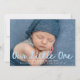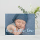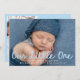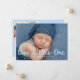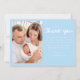 Celebre sua nova chegada com este anúncio de nascimento de fotos doce e moderno com a foto horizontal do seu bebê e a frase "Nosso Pequeno" em um guião manuscrito azul claro. O nome do bebê e as estatísticas de nascimento são apresentados abaixo em letras brancas nítidas, criando um aspecto limpo e contemporâneo. A parte traseira da placa inclui uma foto vertical e um espaço para um obrigado personalizado que você envia, fazer-o como uma manutenção significativa para amigos e familiares. Um design perfeito para bebês ou qualquer um que ama uma paleta de cores suave e serena.