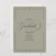Anuncie sua formatura em estilo com nosso Script Clássico sem nenhum anúncio fotográfico. O cabeçalho do eterno lê "Formando" em um estilo clássico e elegante de tipografia sobre um fundo verde. Funciona para segundo grau ou formandos. Personalize com seu nome de formando, texto e classe de ano de graduação. Há um espaço de modelo extra na parte traseira da placa para outra mensagem para amigos e familiares, se você não precisar dela, você pode excluí-la. Precisa de peças correspondentes que não estejam na coleção? entre em contato comigo usando o botão abaixo.