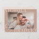 Compartilhe a notícia do seu noivado com esses elegantes cartões de anúncio que apresentam uma foto horizontal ou paisagem com seus nomes alinhados nos cantos em letras clássicas, sobrepondo ligeiramente sua foto e estendendo-se além das bordas do papel para um visual moderno. Personalize com duas linhas de texto personalizado ao longo das laterais para detalhes adicionais ou seu site de casamento.