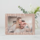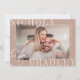 Compartilhe a notícia do seu noivado com esses elegantes cartões de anúncio com uma foto horizontal ou paisagem com seus nomes alinhados nos cantos em letra clássica, sobrepondo ligeiramente sua foto e se estendendo além das bordas do papel para um visual moderno. Personalize com duas linhas de texto personalizado ao longo dos lados para detalhes adicionais ou seu site de casamento.