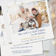 Nova casa para o cartão de natal do lançamento dos feriados para personalizar com sua foto, novo endereço, nomes e quaisquer informações ou mensagens adicionais que desejar. O design tem um desenho de rabisco, árvores de natal e casas na frente e atrás, com um painel plano para o seu texto. Design simples e moderna, totalmente editável para solteiros, casais ou família.