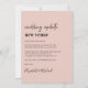 Alteração mínima moderna do anúncio de casamento rosa-claro com "atualização de casamento novo local" escrito em uma mistura de roteiro e tipografia ousada (você pode personalizar isso para "nova data", "casamento menor" etc.). Personalize sua mensagem de alteração de planos, adicione seus nomes em um script semelhante a assinatura e adicione seu site de casamento no lado oposto ou deixe o vazio.