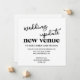 Atualize o seu convidado de casamento com a nova localização com esta mudança de planos de casamento. Sinta-se livre para personalizar e personalizar. As opções de edição estão disponíveis.