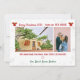 Cartão comovente de Natal elegante e festivo com duas fotos personalizadas e o endereço e os nomes dos membros da família, bem como o ano atual na frente para você personalizar. O cartão inclui uma fita vermelha com três folhas e bagas sagradas, flocos de neve, o "Feliz Natal da NOVA CASA!" e um coração. Você pode substituir o coração por texto, como "Com amor".