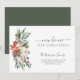 Natal, terracota vermelha sazonal e buquê floral branco com bagas sagradas e família de folhagem verde-pinheiro sazonal movendo novo cartão de endereço com um roteiro de caligrafia. ++++++ Fácil de personalizar com seu nome de família e novo endereço!