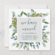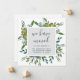 Esta simples mudança de buquê de folhagem azul e verde de cor d'água apresenta a tipografia manuscrita "movemos" e as informações de endereço atualizadas.