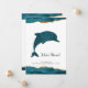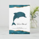 O nosso anúncio colorido apresenta um golfinho brilho brilhante saltando do ouro e do agato lacrimogêneo "água" abaixo. Entre o golfinho e a borda do oceano lacrimogêneo na parte inferior do cartão está o seu novo endereço e localização. No verso deste cartão exclusivo está a sua mensagem pessoal para familiares e amigos, juntamente com o seu novo endereço residencial, número de telefone e informações adicionais que gostaria que eles soubessem. Todo texto pode ser facilmente revisado no modelo de personalização. Este design está em um cartão postal, uma placa plana com envelope, cartão de orçamento e uma etiqueta de endereço de retorno de coordenação.
