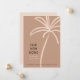 Uma pincelada feita à mão anuncia aos amigos e familiares a localização da sua nova casa. Um lugar quente o suficiente para plantar palmeiras! Os gráficos minimalistas na frente de nossa placa plana de mudança de endereço estão em uma cor quase esbranquiçada contra um fundo rosado. Todo o texto de exemplo na parte frontal e traseira da placa pode ser facilmente alterado no modelo prático. Este design também está disponível como cartão postal e em uma etiqueta de endereço de retorno de coordenação.