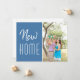 Uma bela família a mudar o anúncio com a sua própria fotografia personalizada. Azul costeiro bonito com tipografia branca-chic para uma bonito mudança de endereço postal para sua nova casa.