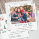 Nova casa para o cartão de natal do lançamento dos feriados para personalizar com sua foto, novo endereço, nomes e quaisquer informações ou mensagens adicionais que desejar. O design tem um desenho de um rabisco de pinheiros e casas na frente e atrás, com um painel plano para o seu texto. Design simples, totalmente editável para solteiros, casais ou família.