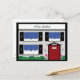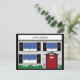 Este design apresenta a frente de uma casa, com muitos detalhes, como janelas, lâmpadas externas, acabamentos vitorianos, uma placa de boas-vindas e mais. Você pode personalizar a porta com o número da sua nova casa, bem como o verso do cartão postal com suas novas informações.