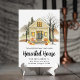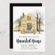 Anúncio movimentado e assustador do Dia das Bruxas com uma casa de aquarelas decorada com jack-o-lanternas e um pano de fundo de árvores assustadoras. Personalize o anúncio em movimento do Dia das Bruxas com seu nome de família e novo endereço.