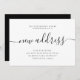 Simples e elegante cartão de anúncio de caligrafia de caligrafia de endereço preto e branco, com mínimo elegante. ++++++++ Fácil de personalizar com seu novo endereço residencial.
