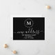 Fundo preto simples e elegante com um delicado monograma botânico branco, tipografia branca para novos detalhes de endereço. Fundo branco personalizável no verso do anúncio para nota manuscrita opcional para familiares e amigos.