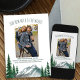 Cartão de Anúncio de Movimentação de Fotografias que pode personalizar com uma selfie ou uma fotografia da sua nova casa, por exemplo. O design apresenta uma borda de montanha aquática com pinheiros. O título diz "nosso novo pescoço da floresta" (que você pode editar para "meu novo pescoço da floresta", se necessário). Você também pode personalizar o restante do texto com o(s) seu(s) nome(s), novo endereço e quaisquer informações adicionais que queira incluir.