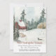 Novo Pescoço da Floresta, tradicional cartão de natal branco 2 em 1 e anúncio em movimento de férias. Design apresenta a pacífica aquarela paisagem de inverno de uma cabana ao lado do lago, pinheiros e um campo de neve com manga e pato no lago. O texto diz "New Neck of the Woods" na tipografia manuscrita neat e o modelo é configurado para o seu texto personalizado.