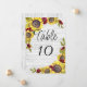 Girassóis em madeira branca: Modelo da mesa de casamento. Este Autumn Floral é simples, mas elegante e perfeito para um casamento de na moda. A design neutra apresenta uma placa minimalista decorada com spray romântico de girassóis com fundo branco de madeira.