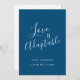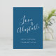 O amor é um convite adaptável para convidados que deveriam comparecer fisicamente ao seu casamento e movê-los para o seu evento de casamento. Parte do coração tipográfico simples correspondente no jogo de casamento azul escuro e branco. Ideal para usar como cartão de casamento para informar aos seus convidados sobre mudanças de casamento que a pandemia ou outras mudanças o forçaram a reduzir seus números de convidados e, portanto, estão mudando os convidados para assistir remotamente seu evento ao vivo. A redação pode ser alterada para atender às suas necessidades e aos seus detalhes de streaming. Outras opções de cor estão disponíveis. Design original de Sarah Trett para www.mylittleedenweddings.com no Zazzle.