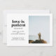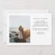 Se você tomou a decisão de se casar em segredo em vez de esperar por uma data de casamento adiada, compartilhe sua grande notícia com este cartão de anúncio de casamento secreto. Ele apresenta espaço para uma única foto vertical na frente, bem como espaço para a data e local do casamento. O verso do cartão tem espaço para outra foto e uma nota pessoal.