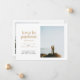 Se você tomou a decisão de fugir juntos em vez de esperar por uma data de casamento adiada, compartilhe sua grande notícia com este cartão de anúncio de fuga. Ele apresenta texto neutro em taupe e cinza escuro e espaço para uma única foto vertical na frente, bem como espaço para a data e local da fuga. O verso do cartão tem espaço para outra foto e uma nota pessoal.